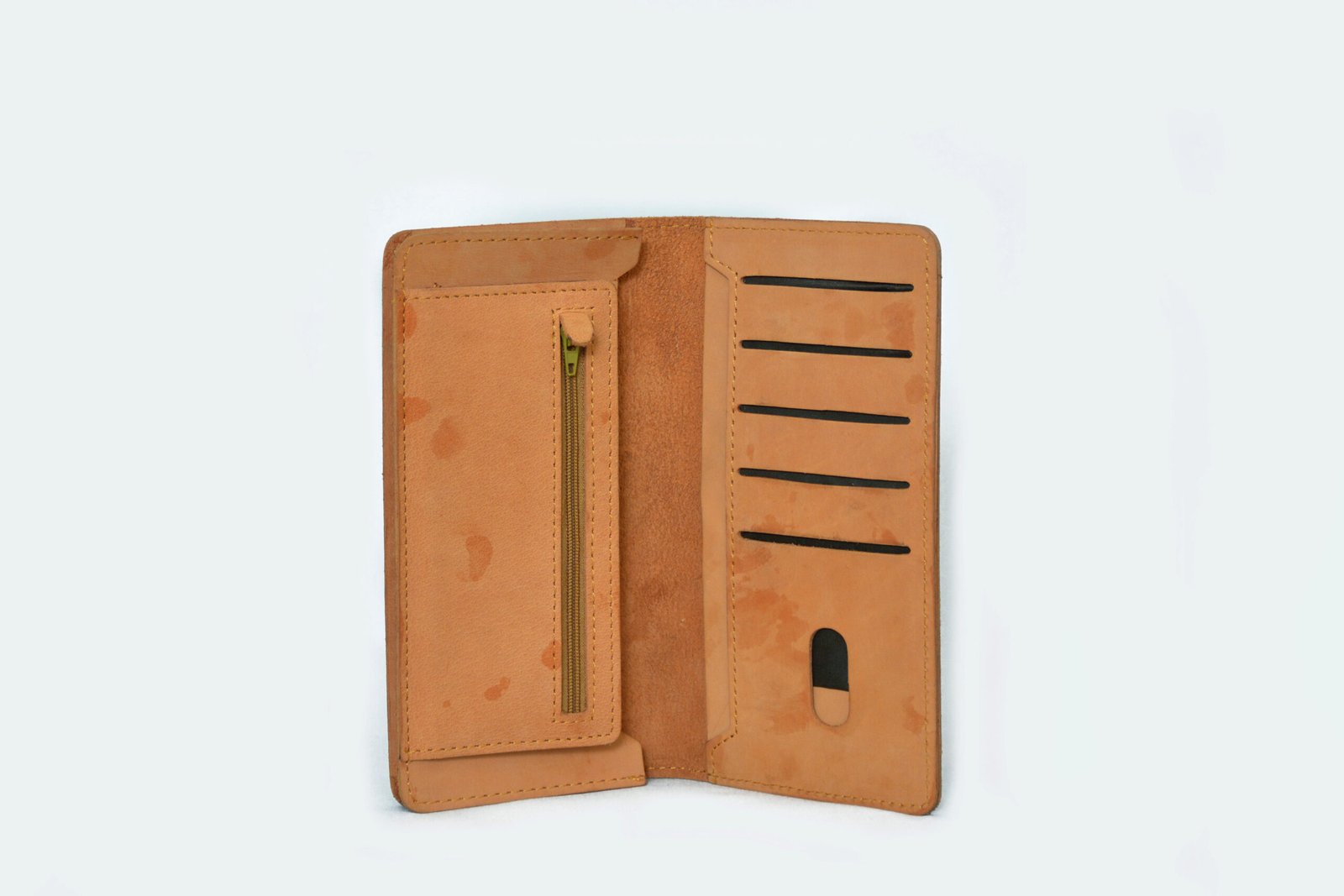 Elevate your everyday style with this handcrafted tan leather long wallet, designed for both sophistication and practicality. Made from premium full-grain leather, this wallet features multiple card slots, a secure zipper pocket, and a spacious bill compartment to keep your essentials organized